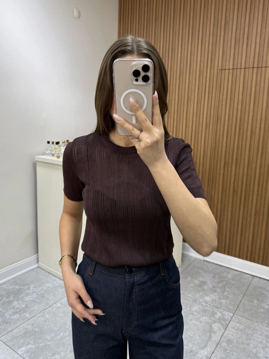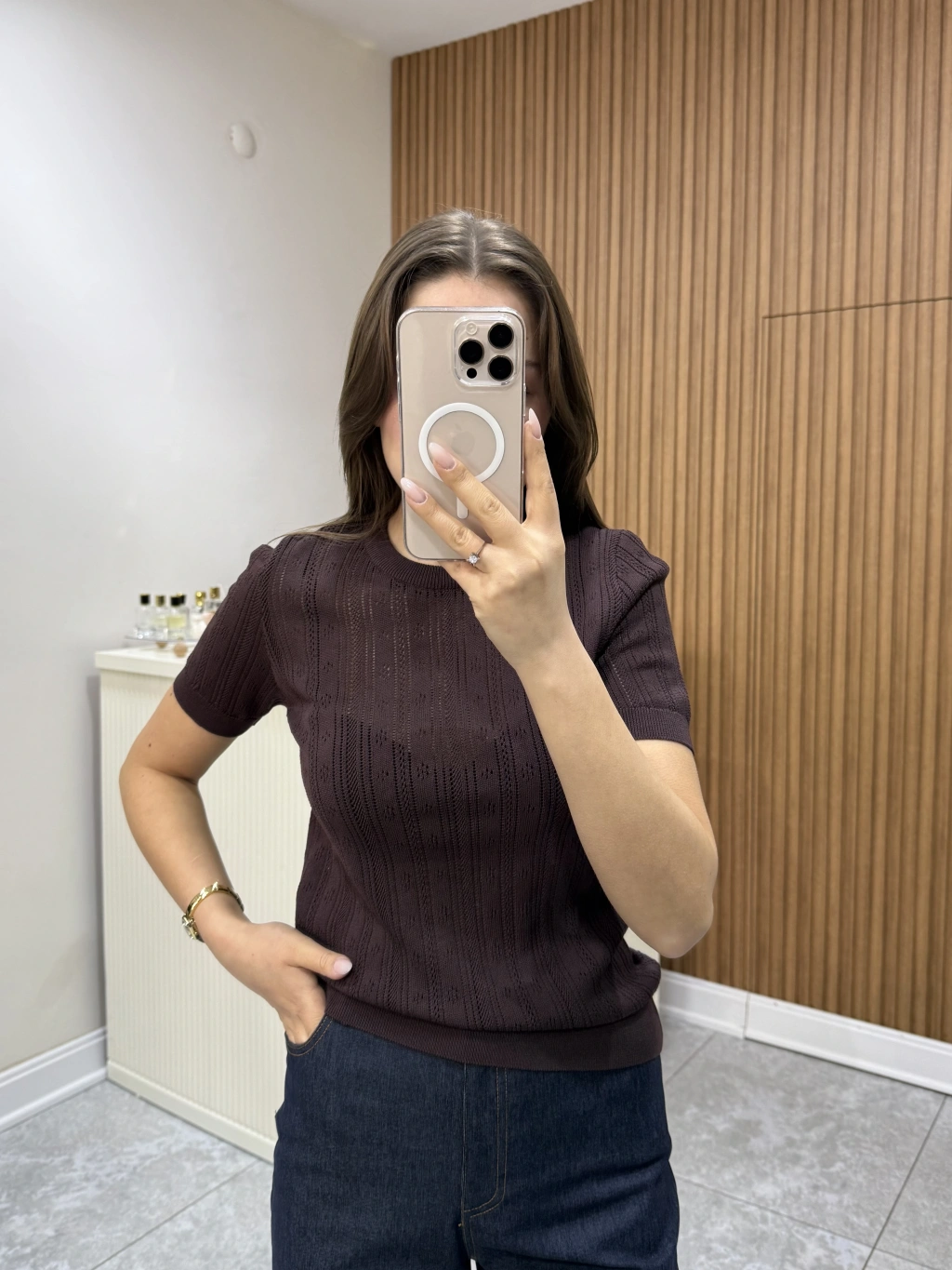 Polo Yaka Kısa Kol Acı Kahve Triko