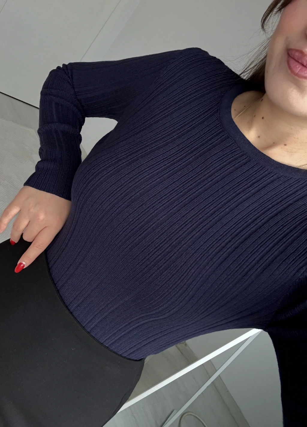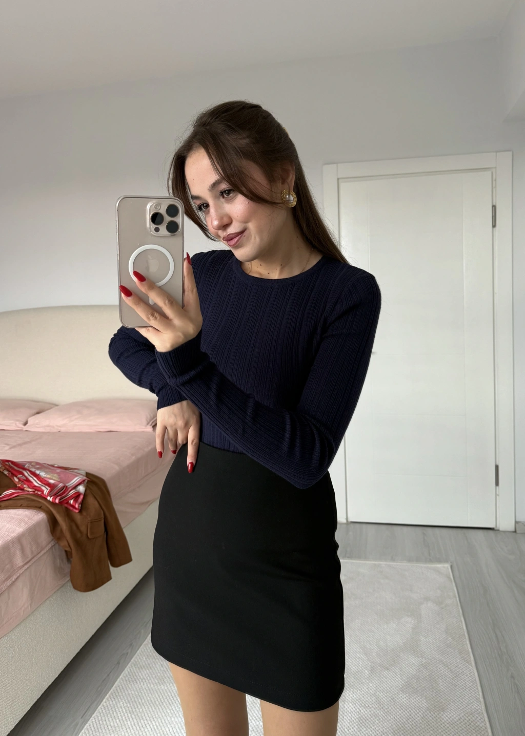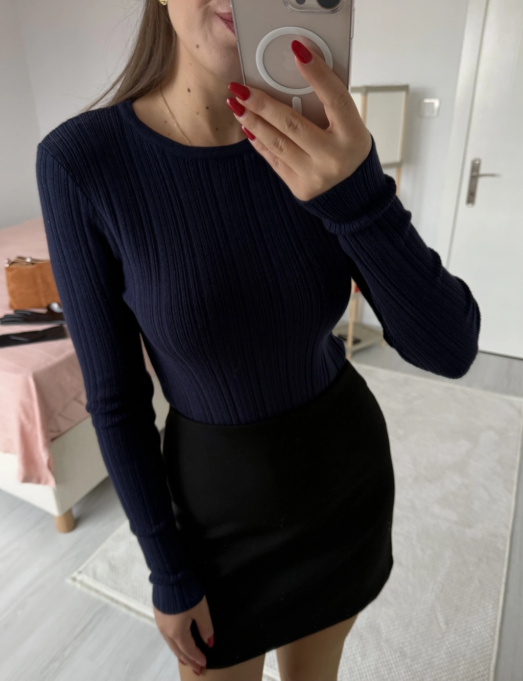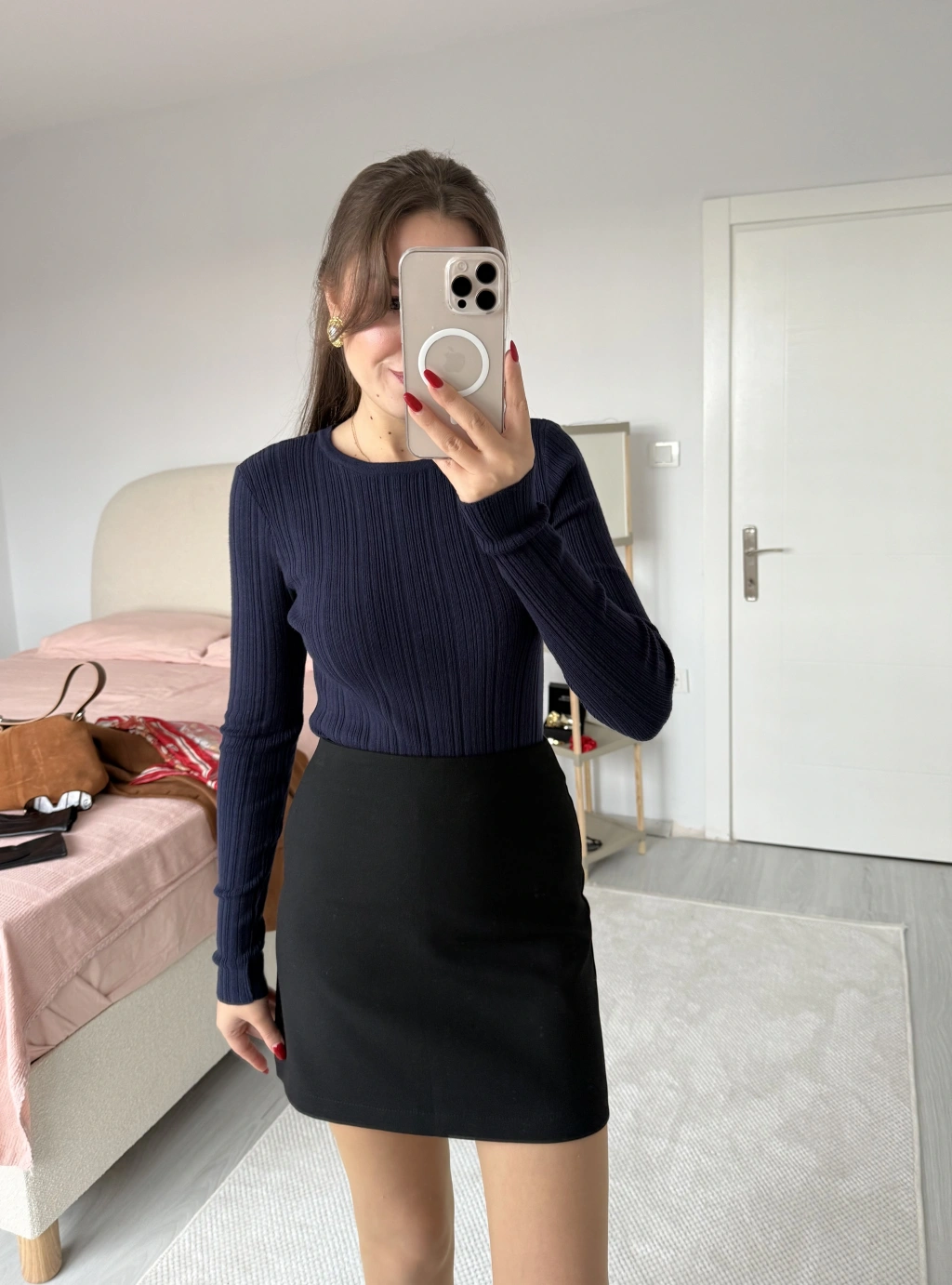 Bisiklet Yaka Fitilli Örgü Kazak Lacivert