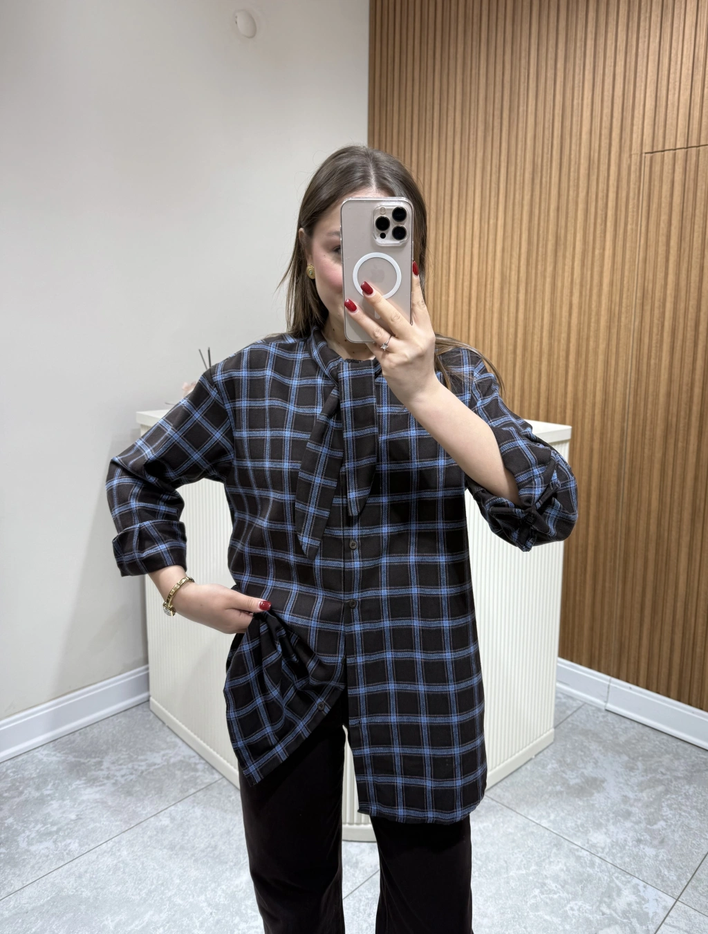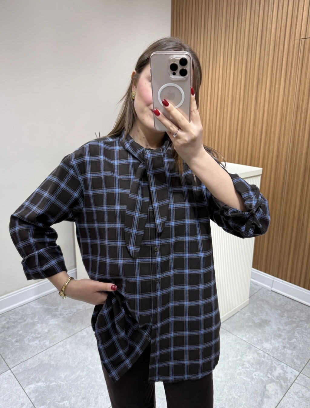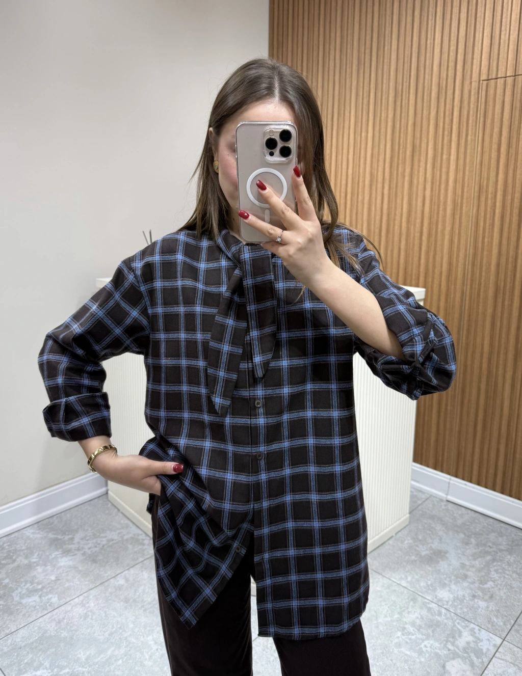 Boyundan Bağlamalı Ekose Gömlek Kahve Çizgili