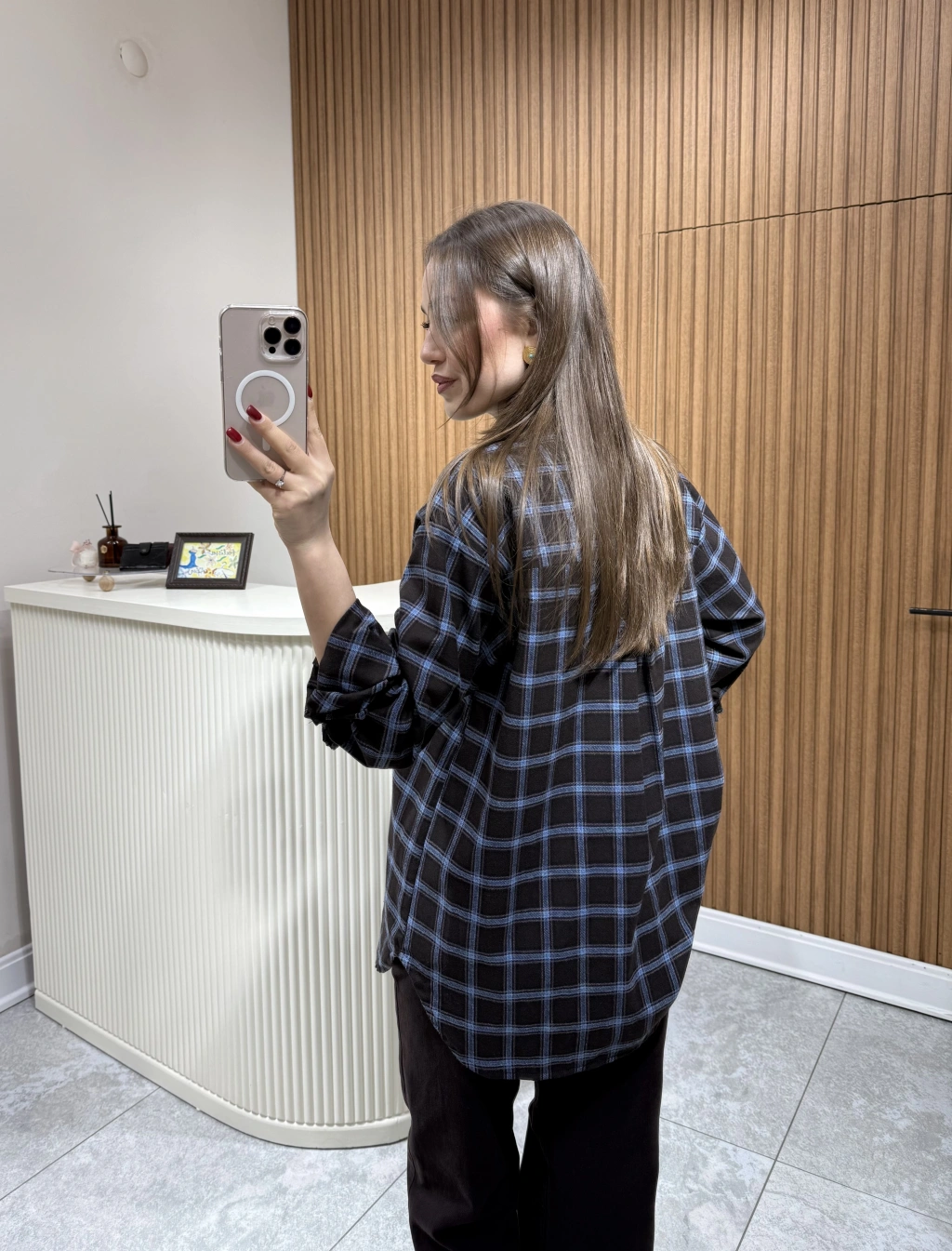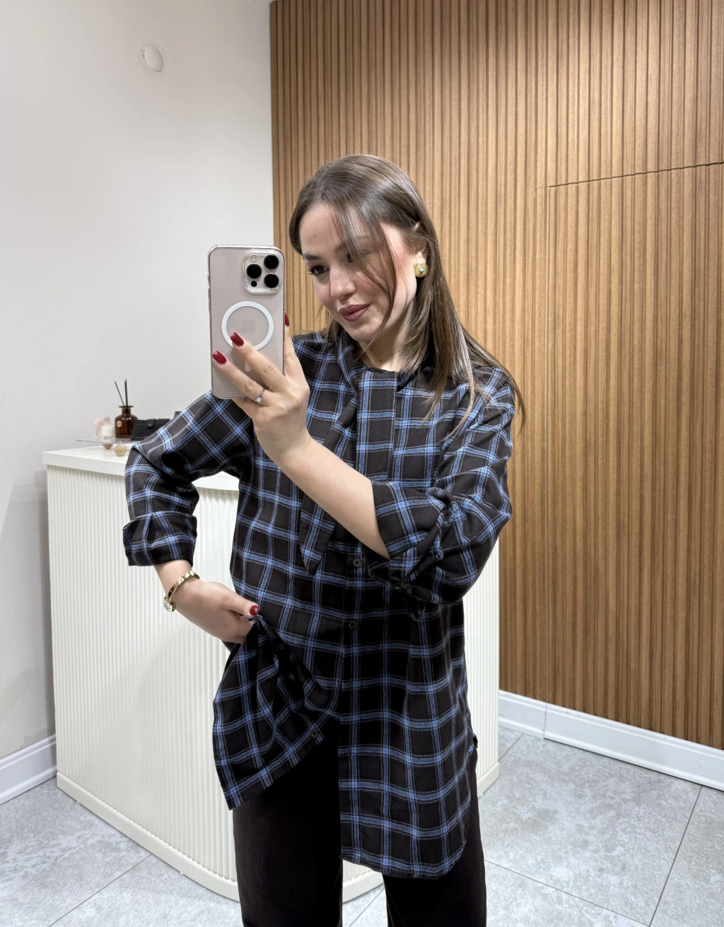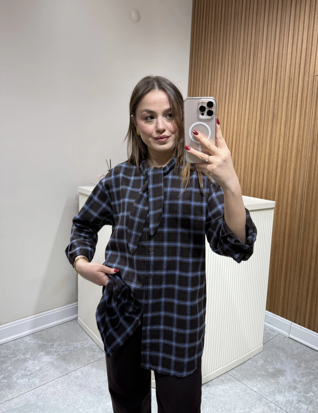 Boyundan Bağlamalı Ekose Gömlek Kahve Çizgili