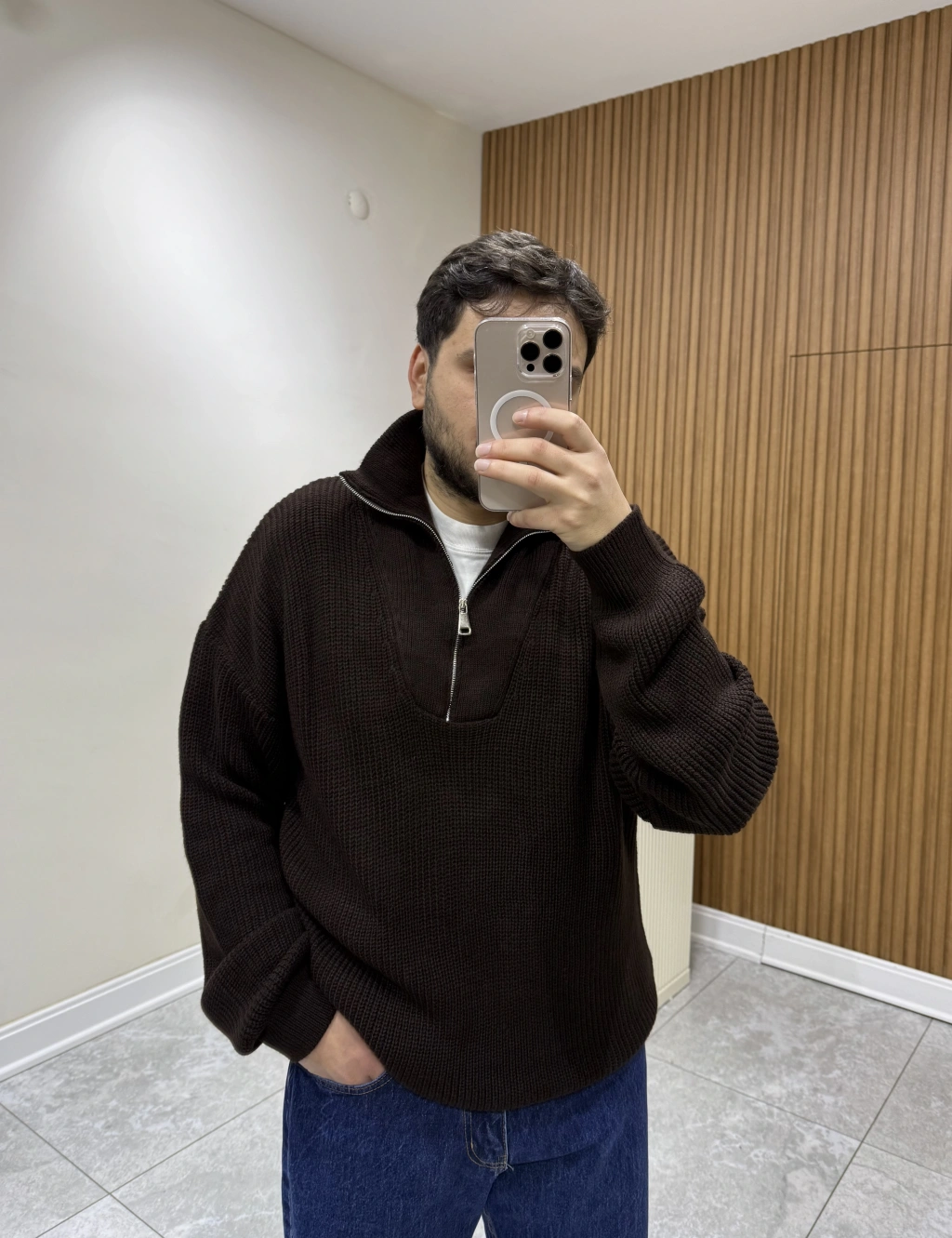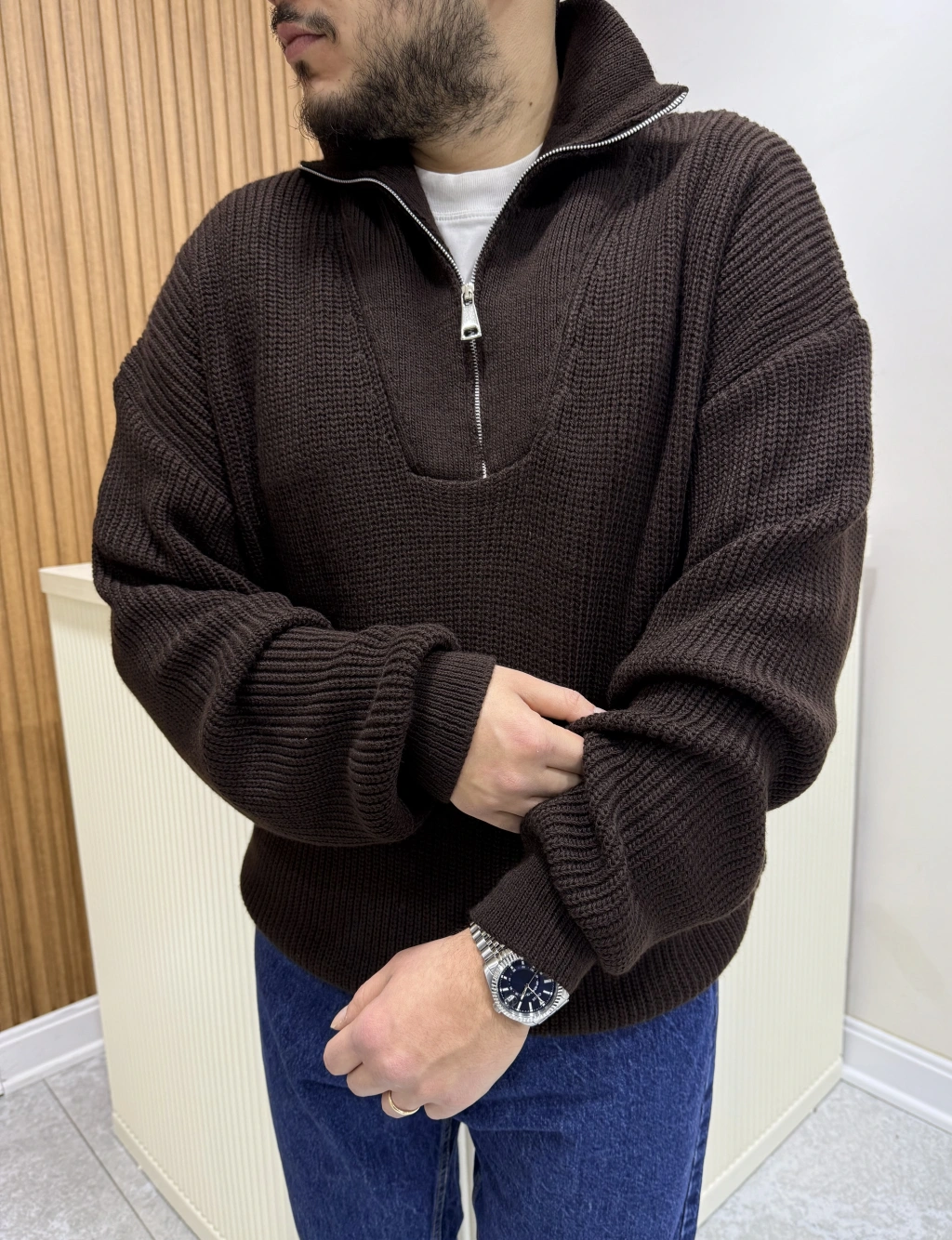 Fermuar Yakalı Triko Kahve