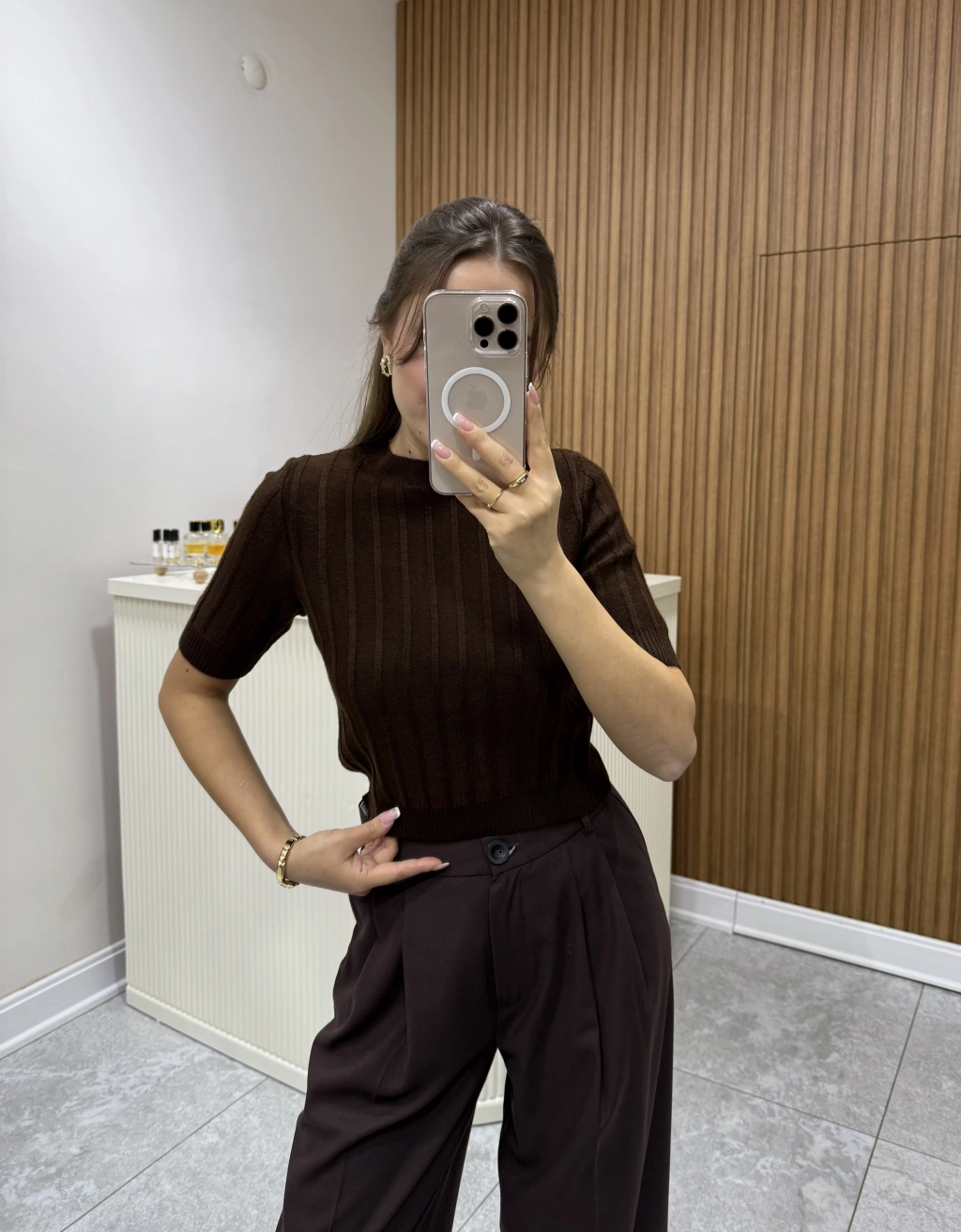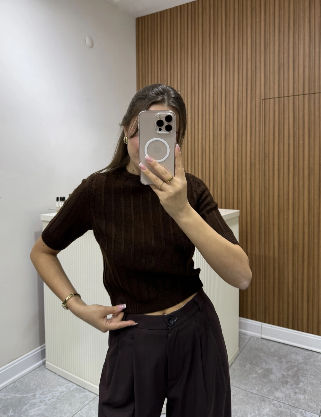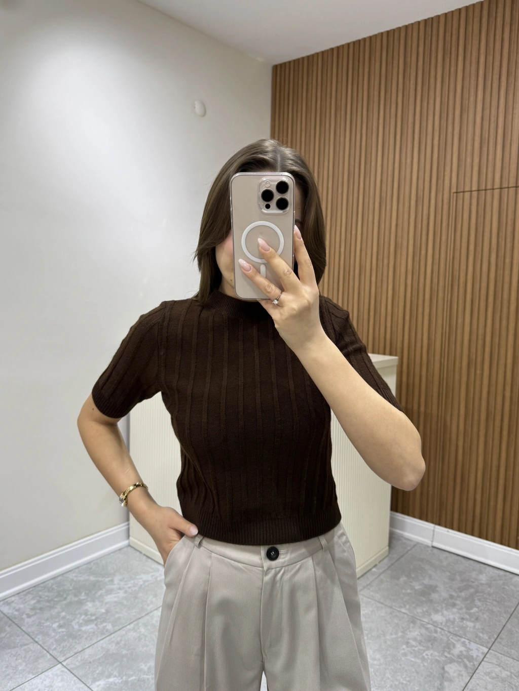 Polo Yaka Kısa Kol Acı Kahve Triko