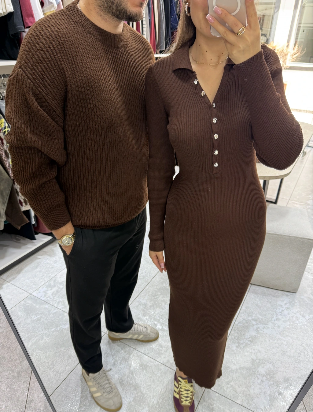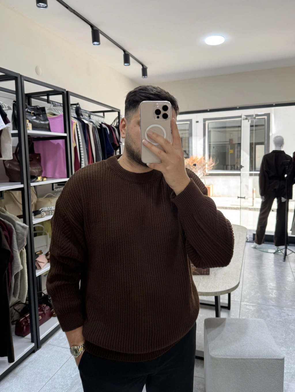 Kahve Örgülü Triko Kazak