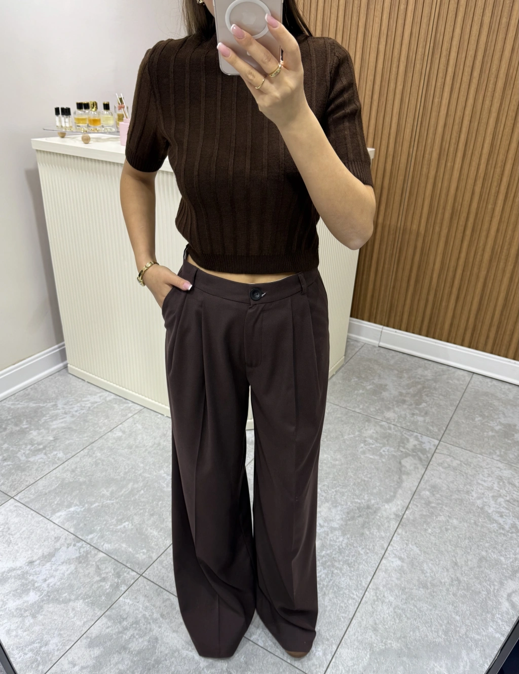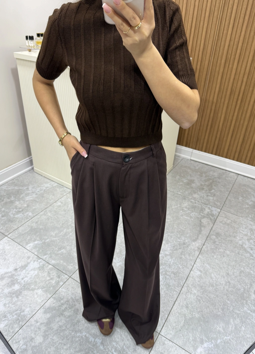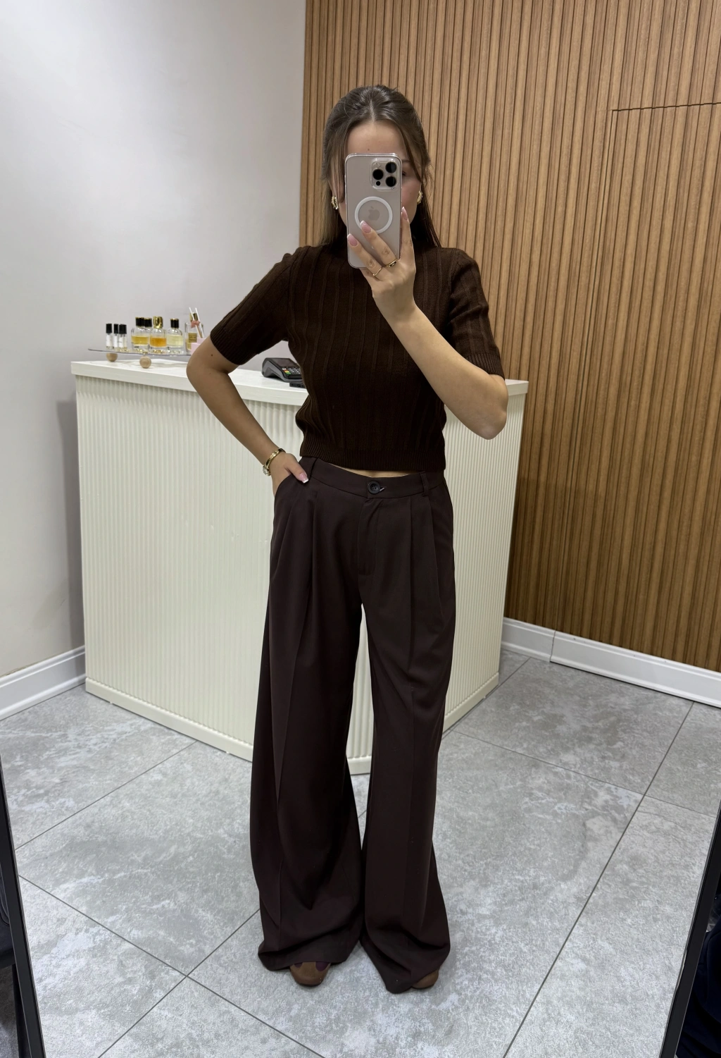 Polo Yaka Kısa Kol Acı Kahve Triko