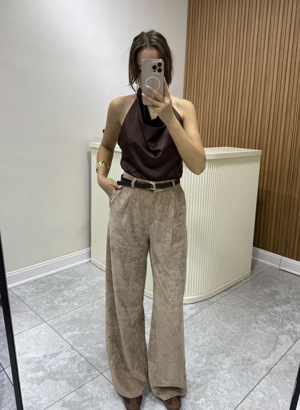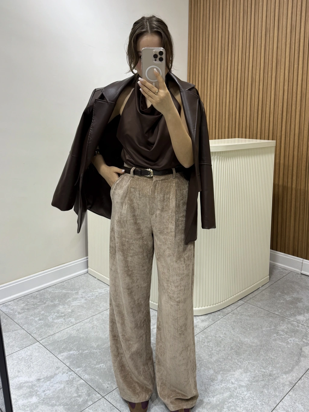 Kemerli Kadife Pantolon Kahve