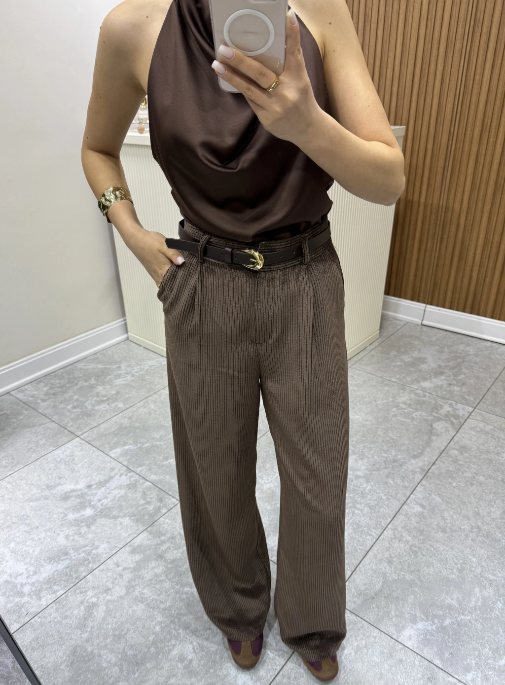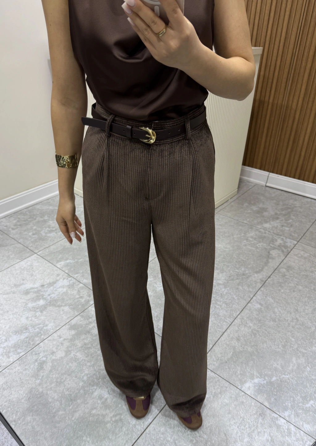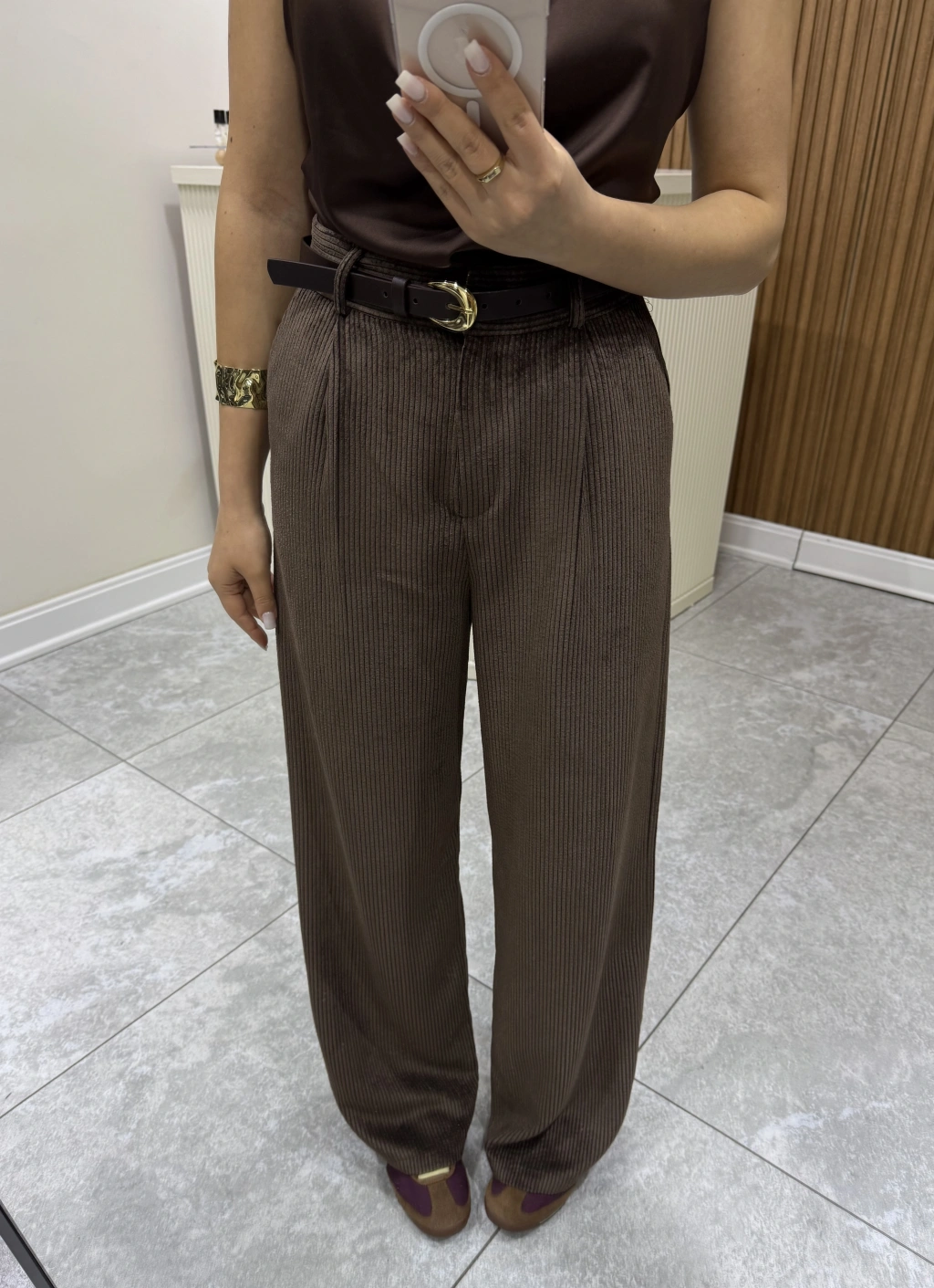 Kemerli Kadife Pantolon Kahve