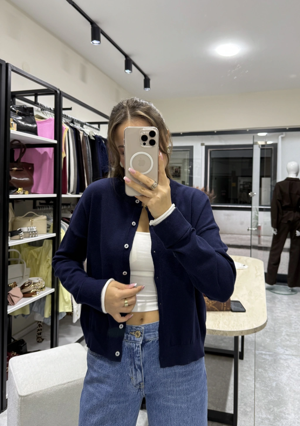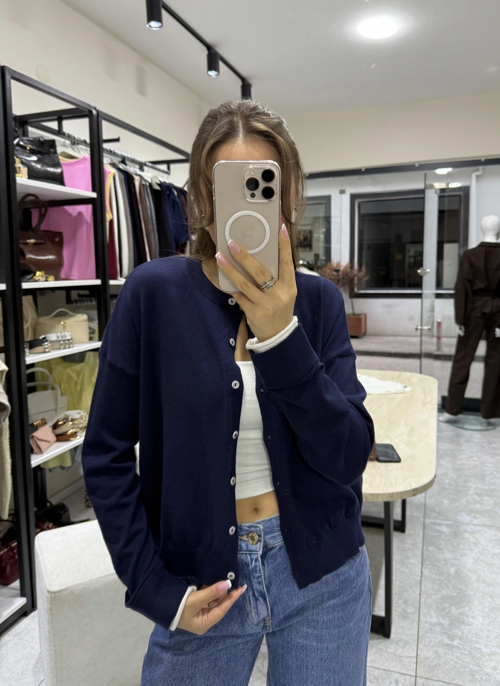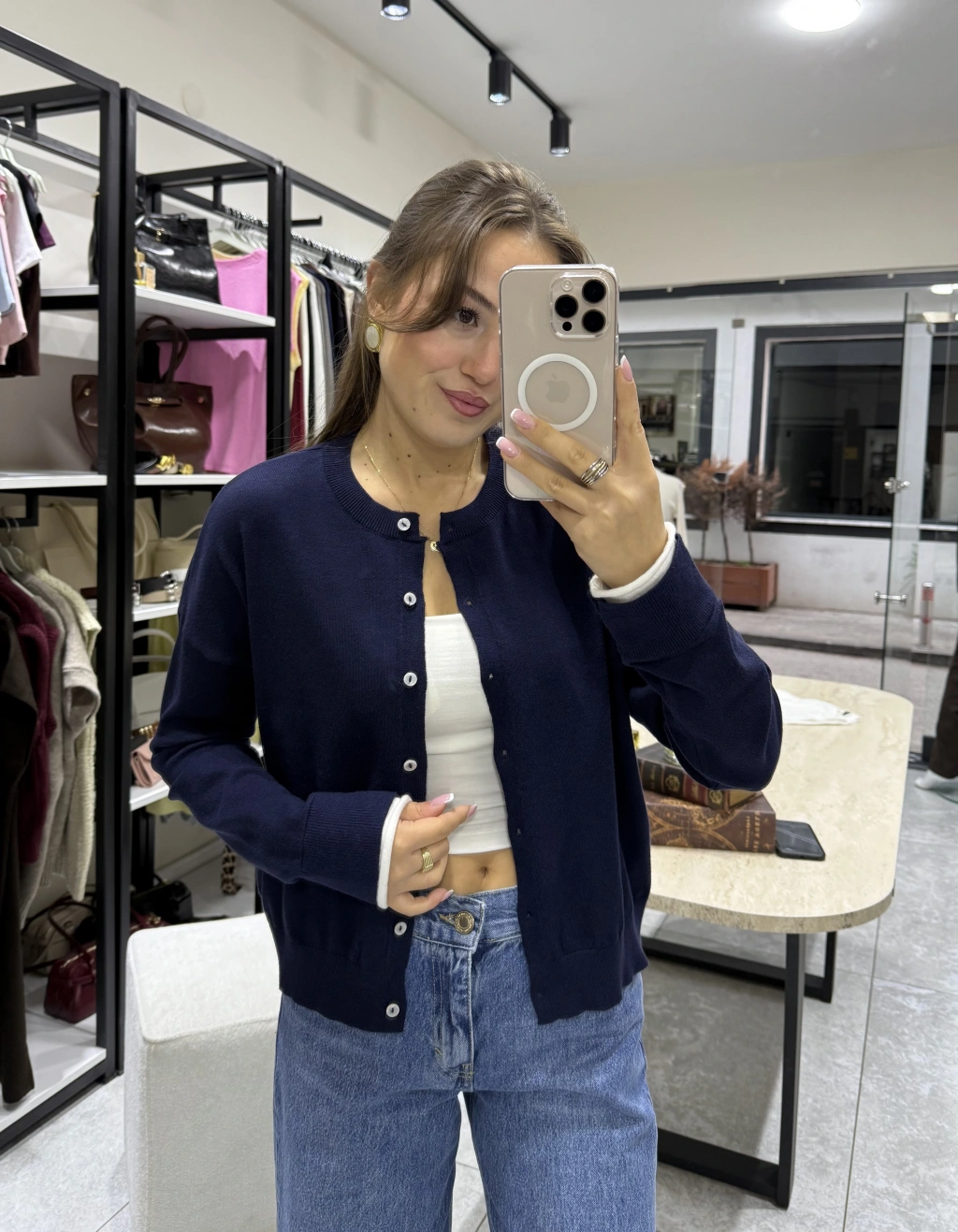 Yüksek Bel Lacivert Denim Pantolon