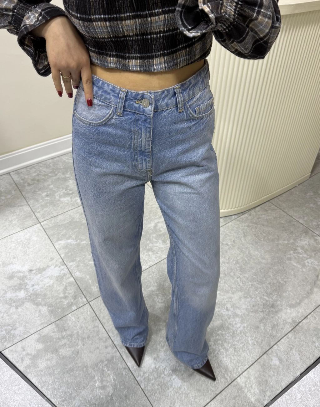 Marka Model Wide Leg Buz Mavisi Jean