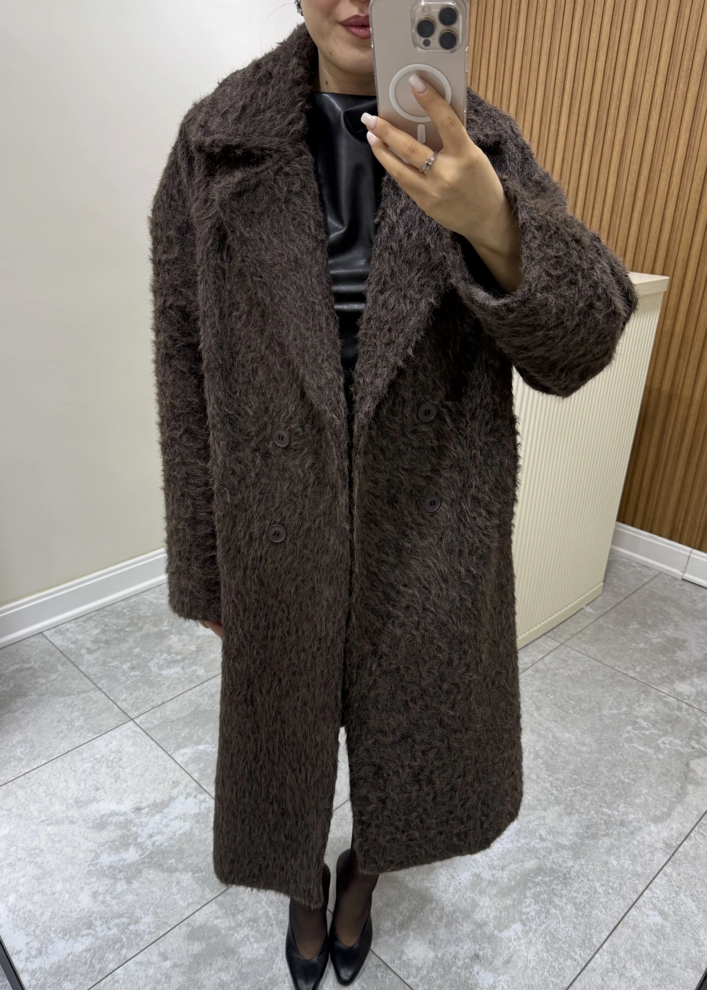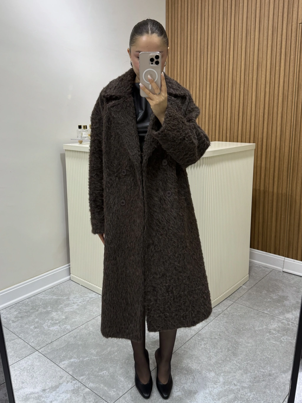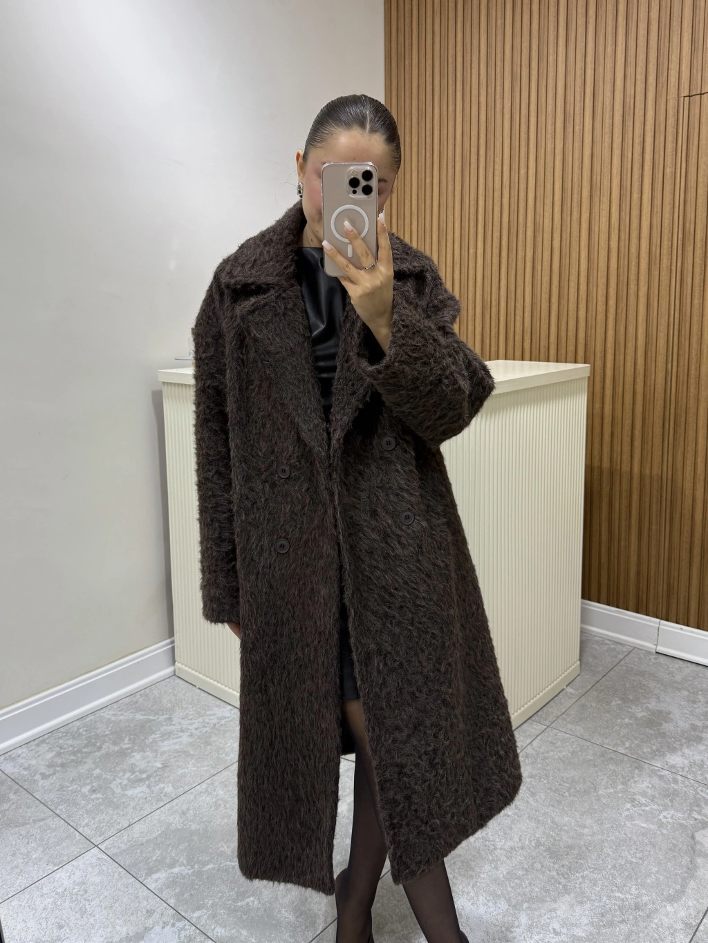 Oversize Astarlı Kahve Kürk Kaban