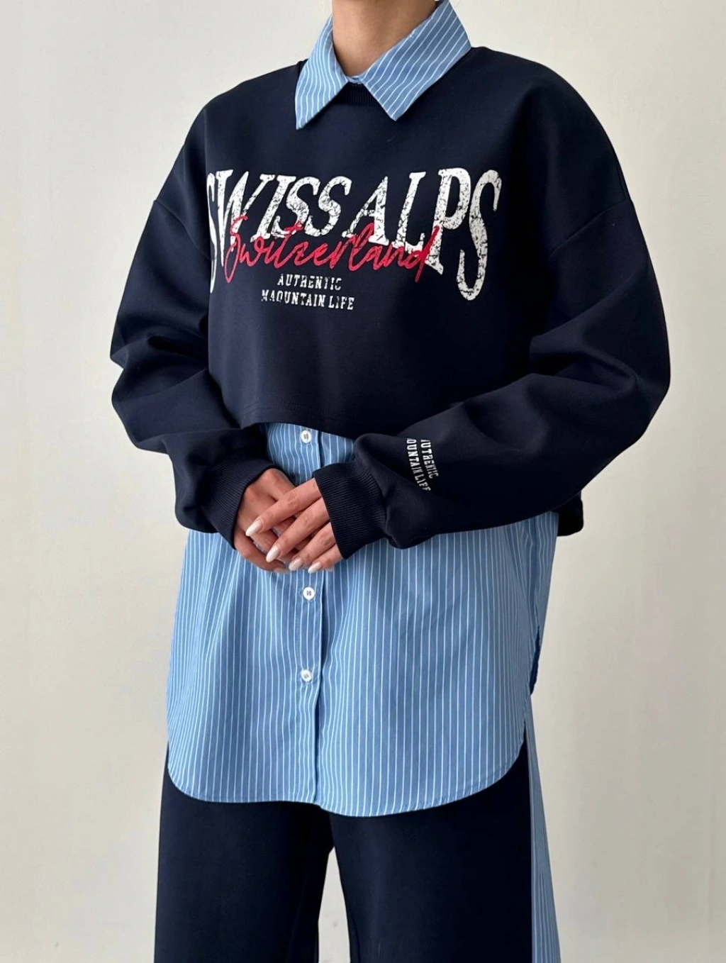 Gömlek Detaylı Sweatshirt Lacivert