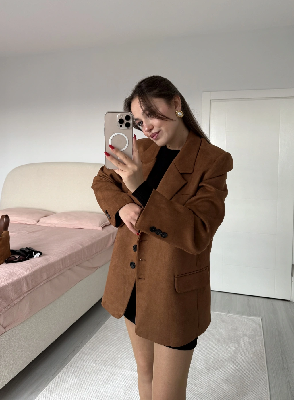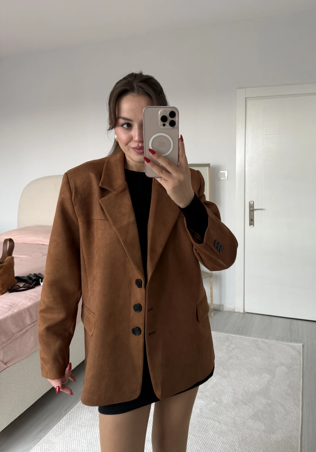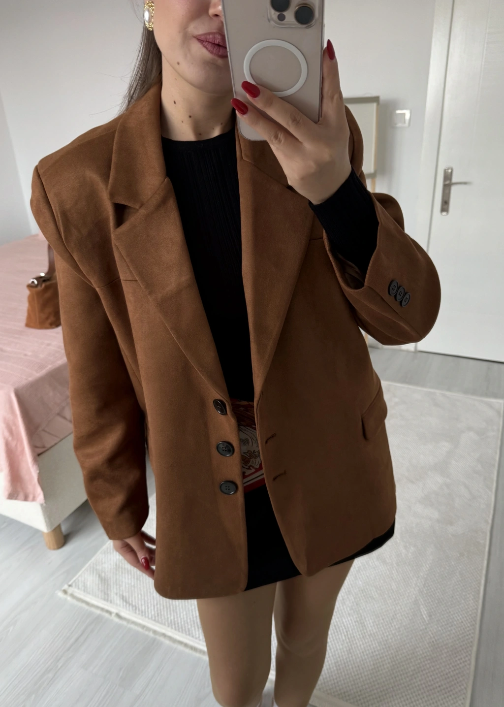 Süet Blazer Ceket Taba